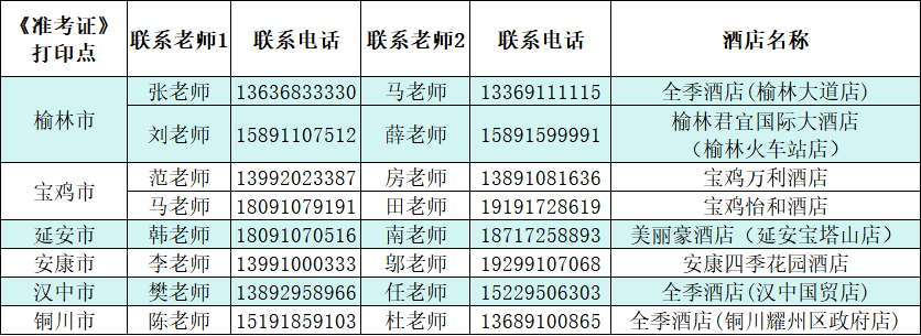各地市原设打印点,因当地公安限制酒店及附近道路人流量,渭南市建国饭店、渭南市澄城兰亭酒店(澄城育才东路店)、商洛市全季酒店(江滨北路店)等部分酒店的打印点被迫临时取消,请考生切勿前往。受此影响,其他市区酒店的打印点能否正常服务具有很大的不确定性,请考生务必提前打电话确认。